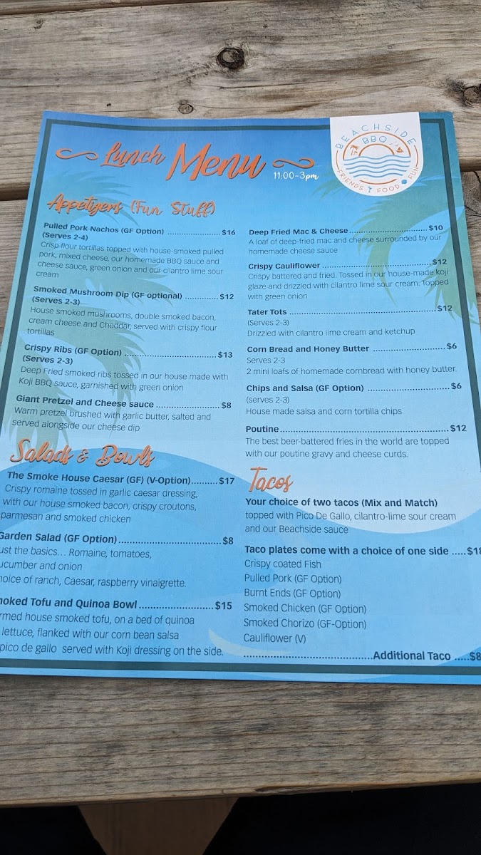 The atmosphere here is lively, filled with the aromas of smoky BBQ and accompanied by a tiki bar vibe that invites you back for more. Whether you're a local or just passing through, Beachside BBQ is a must-visit for hearty meals and great service!
